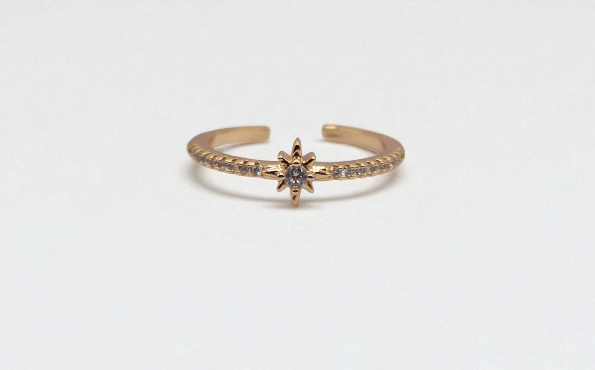 - Adjustable ring, Size 8.5 Star crystal and small zircons stones around the ring
