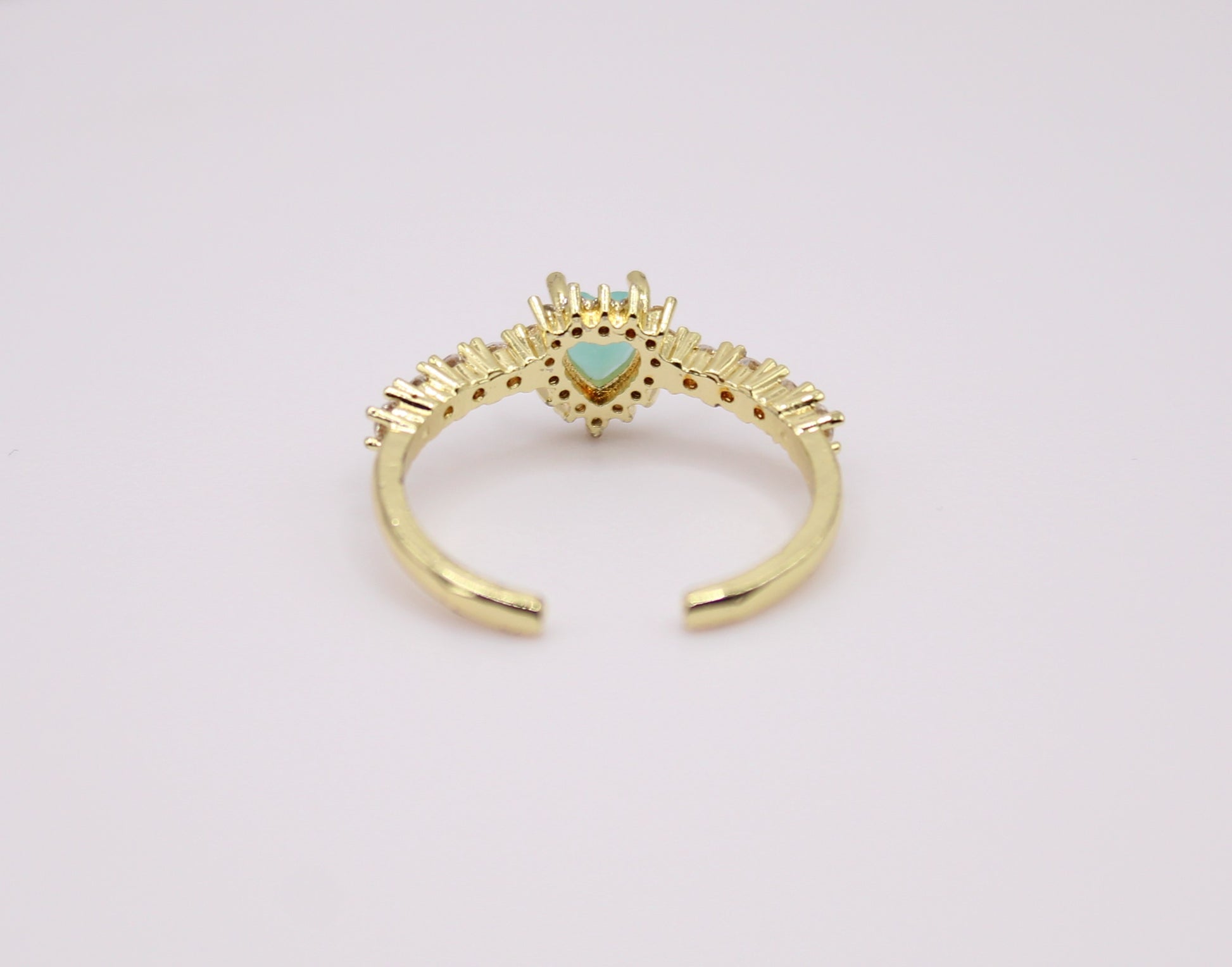 - Adjustable ring, SIZE 7 Small crystal zircon stones and big heart aquamarine stone