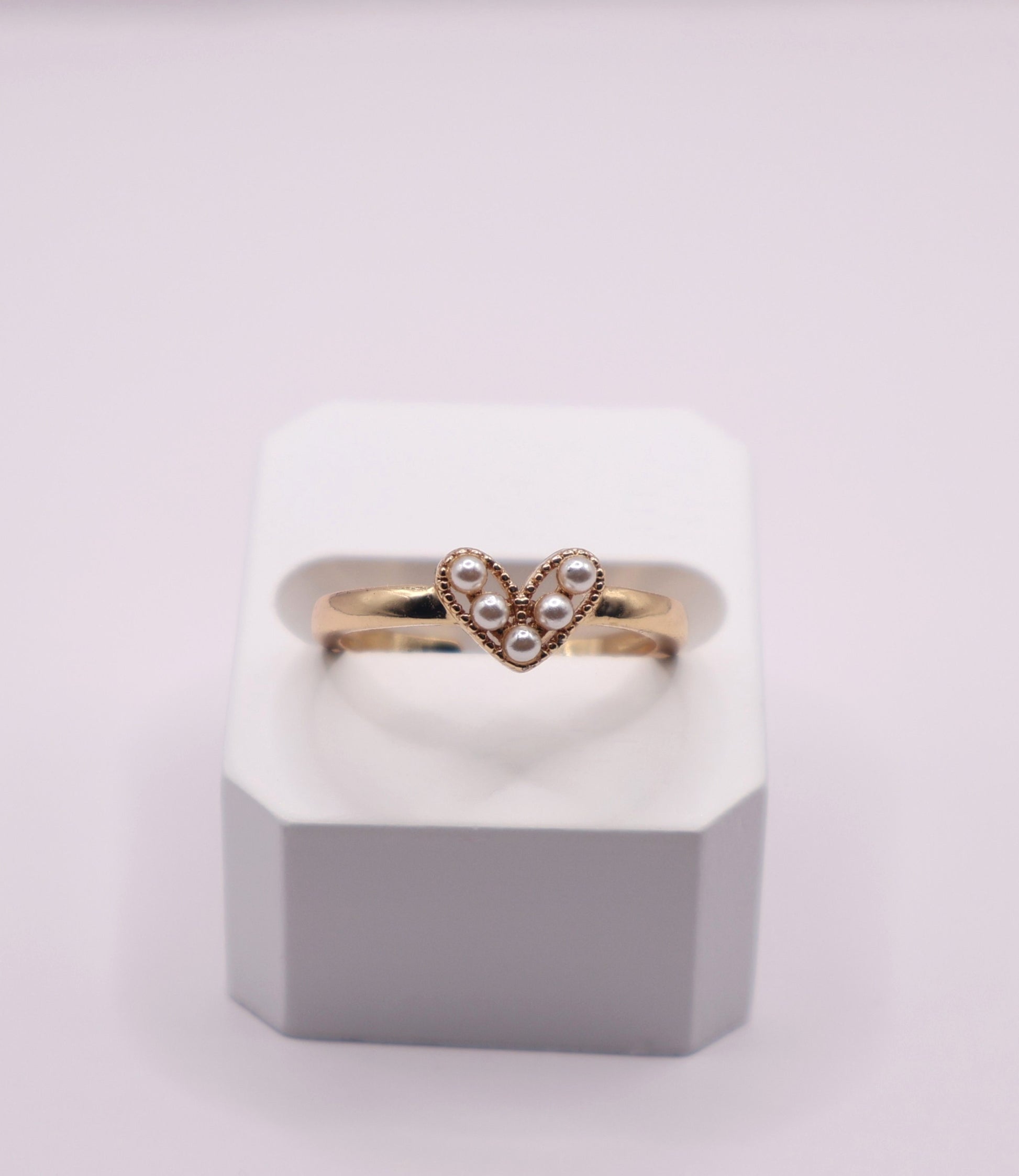 - Adjustable ring, Size 7.5 Pearls heart ring